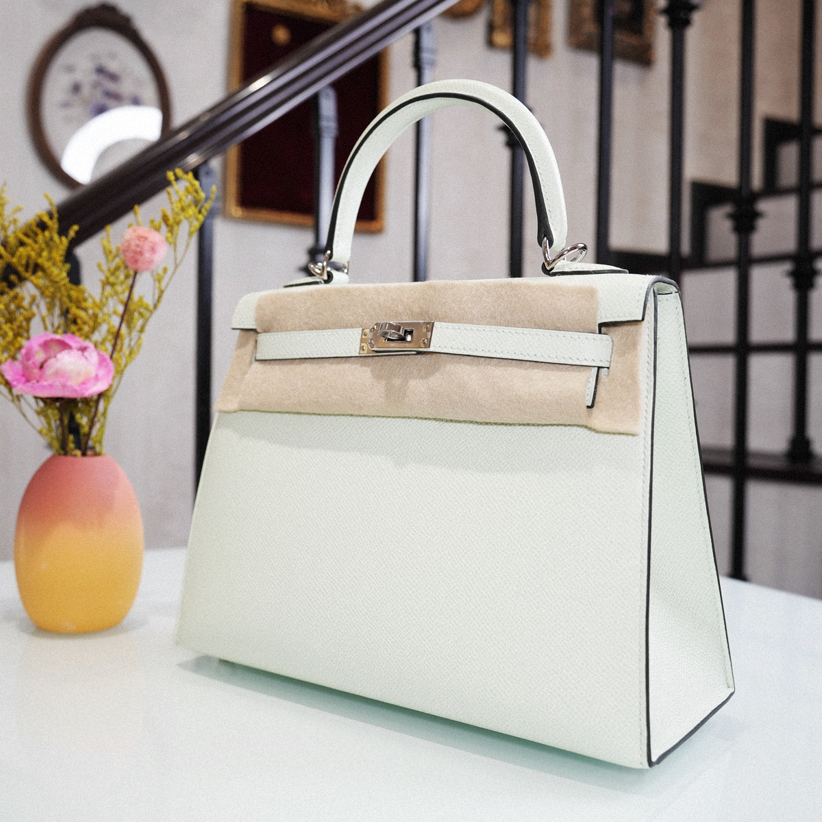 KELLY 25 CC0S- Sparkling green gold buckle EPSOM leather