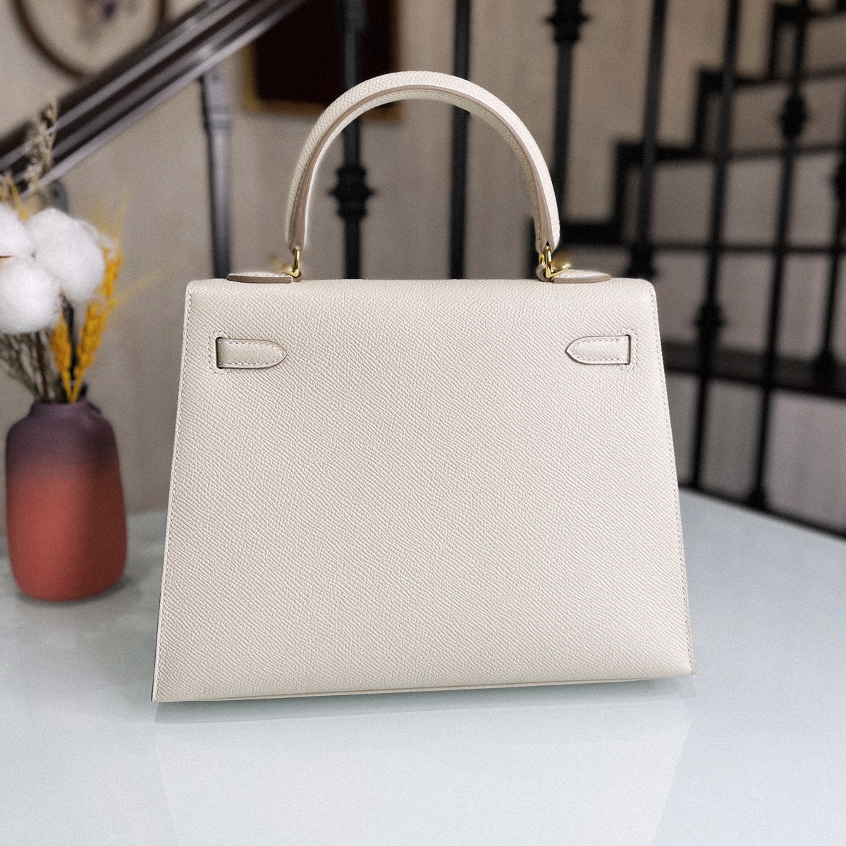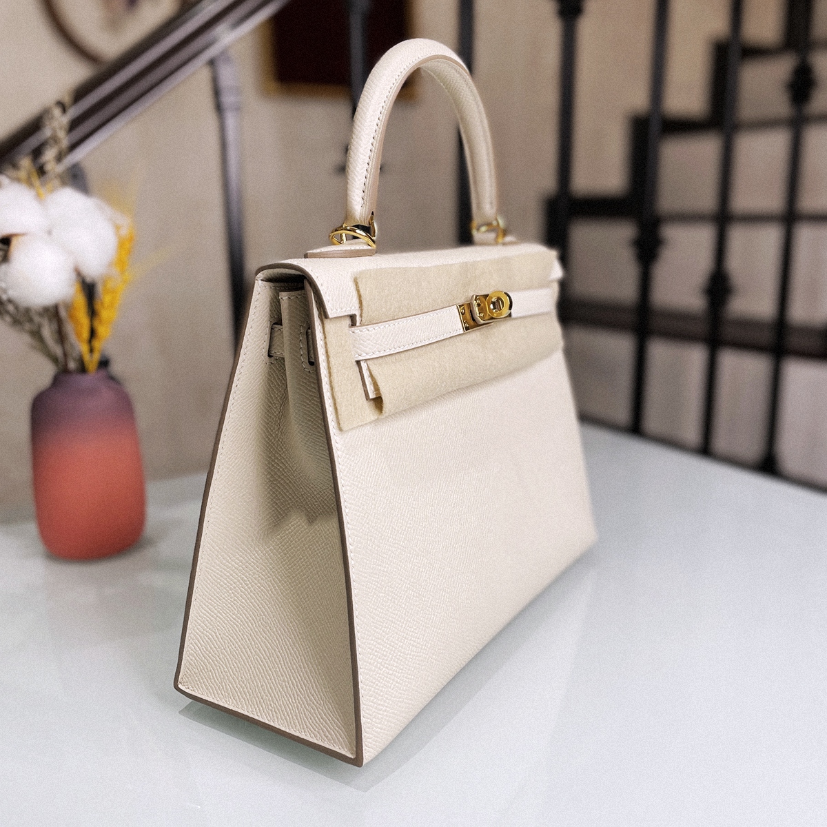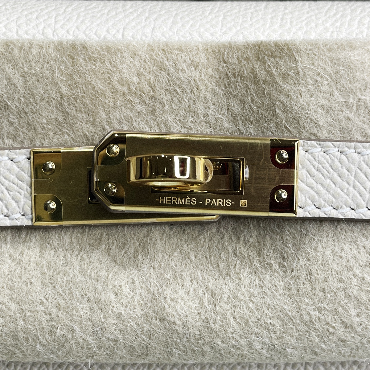 KELLY 25 CC10- Milkshake White Gold button EPSOM leather