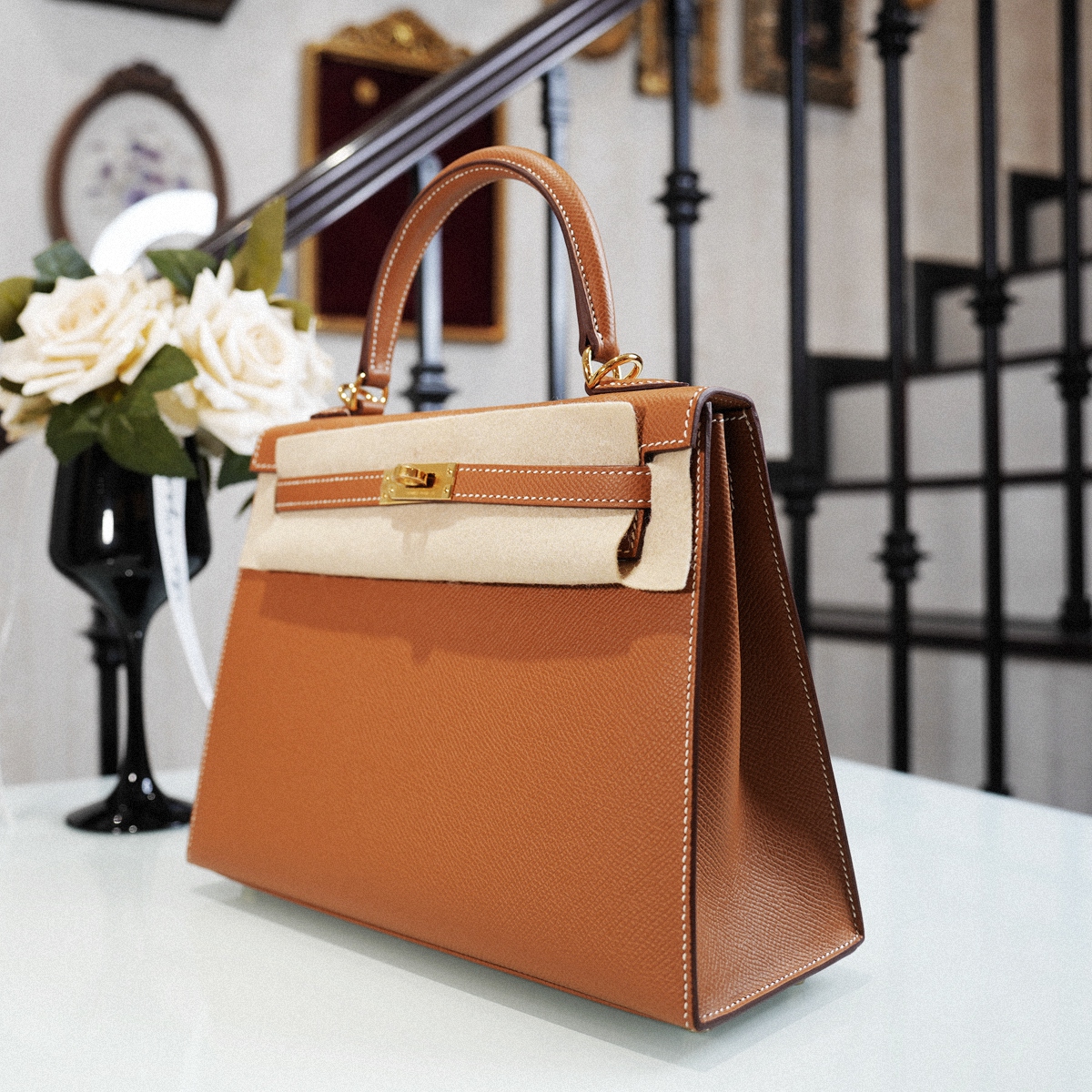 KELLY 25 CC37- Gold brown buckle EPSOM leather
