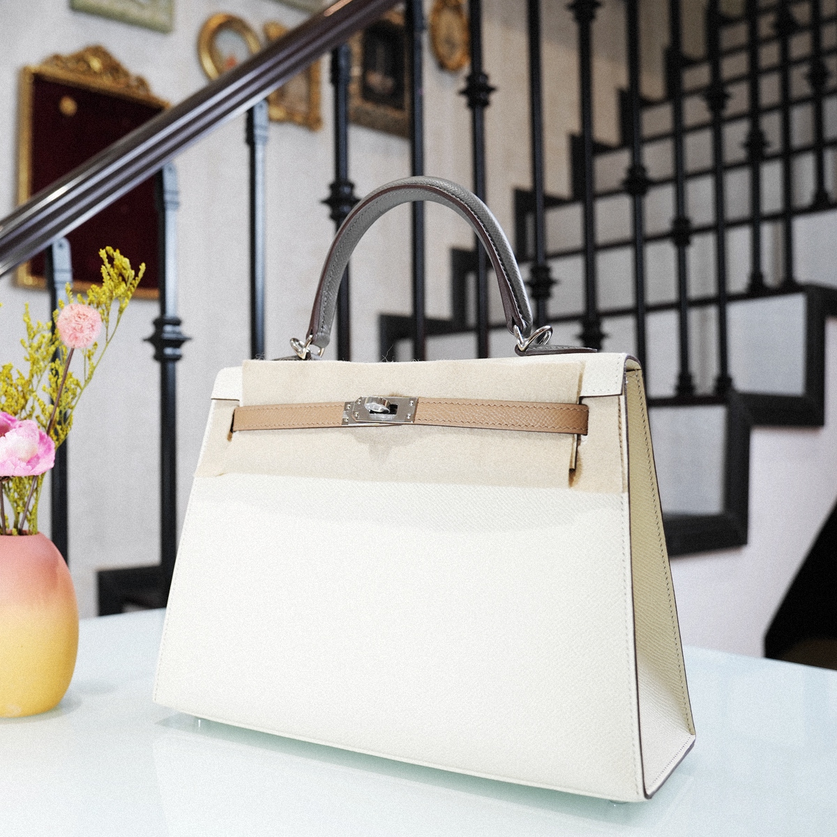 KELLY 25 Three color CCI2 0M 0L- Cream white with milk tea with rain and ash