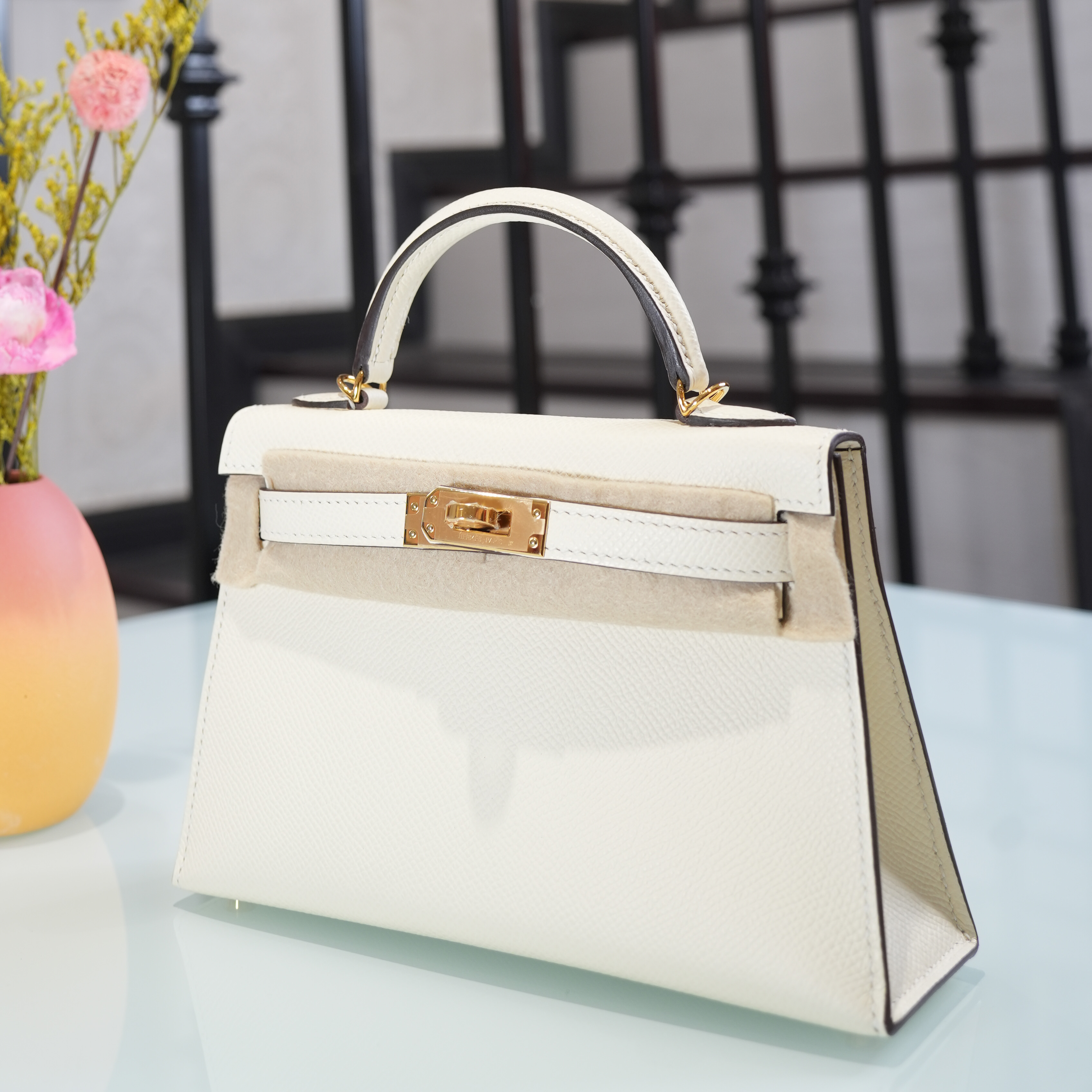 MINI KELLY CCI2- Cream white Gold buckle EPSOM leather