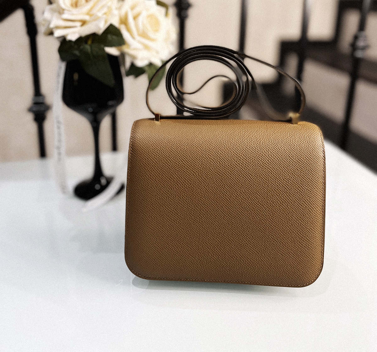 Constance mini CC3G epsom Gold button chestnuts