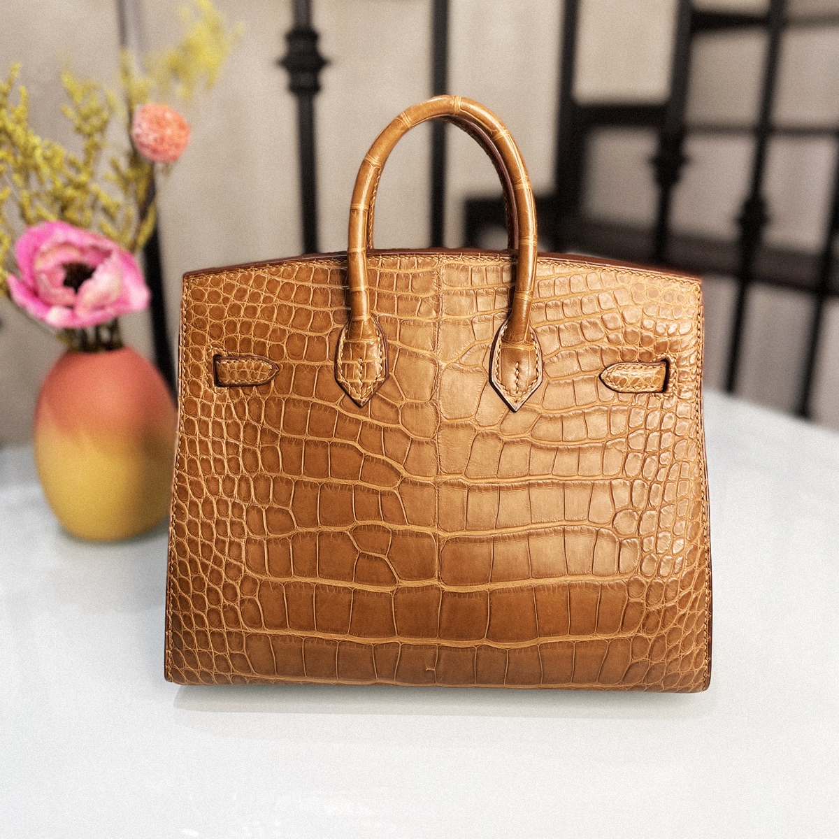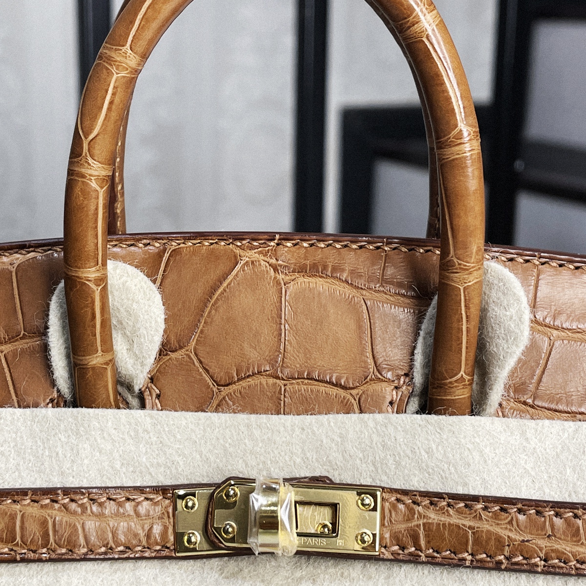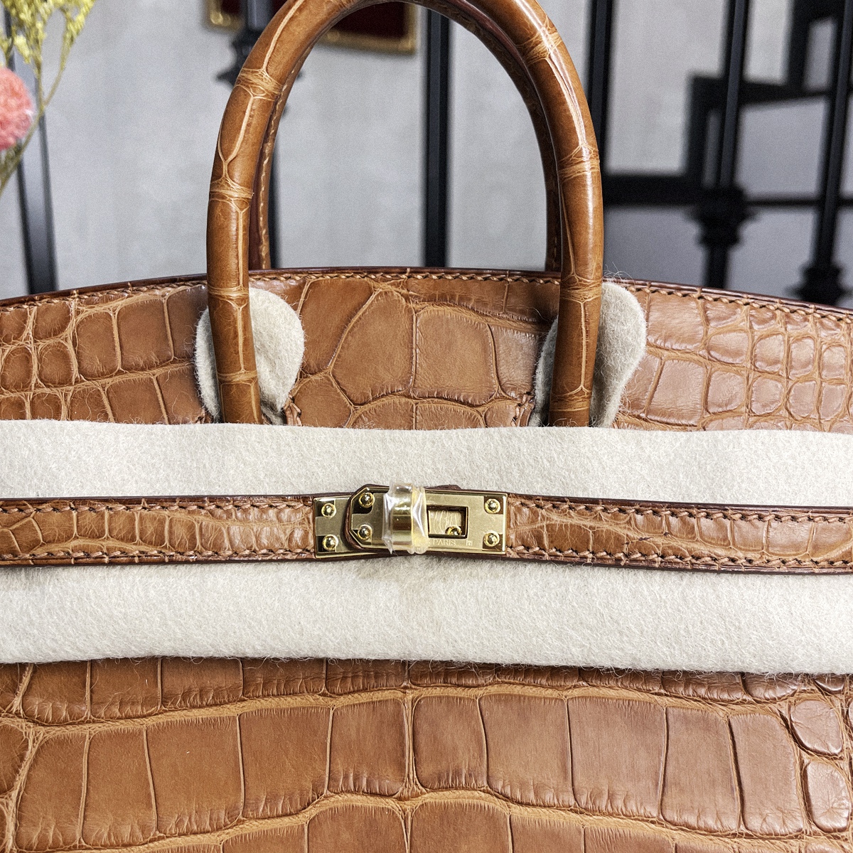 Birkin 20 Gold Brown gold buckle Alligator block fog surface