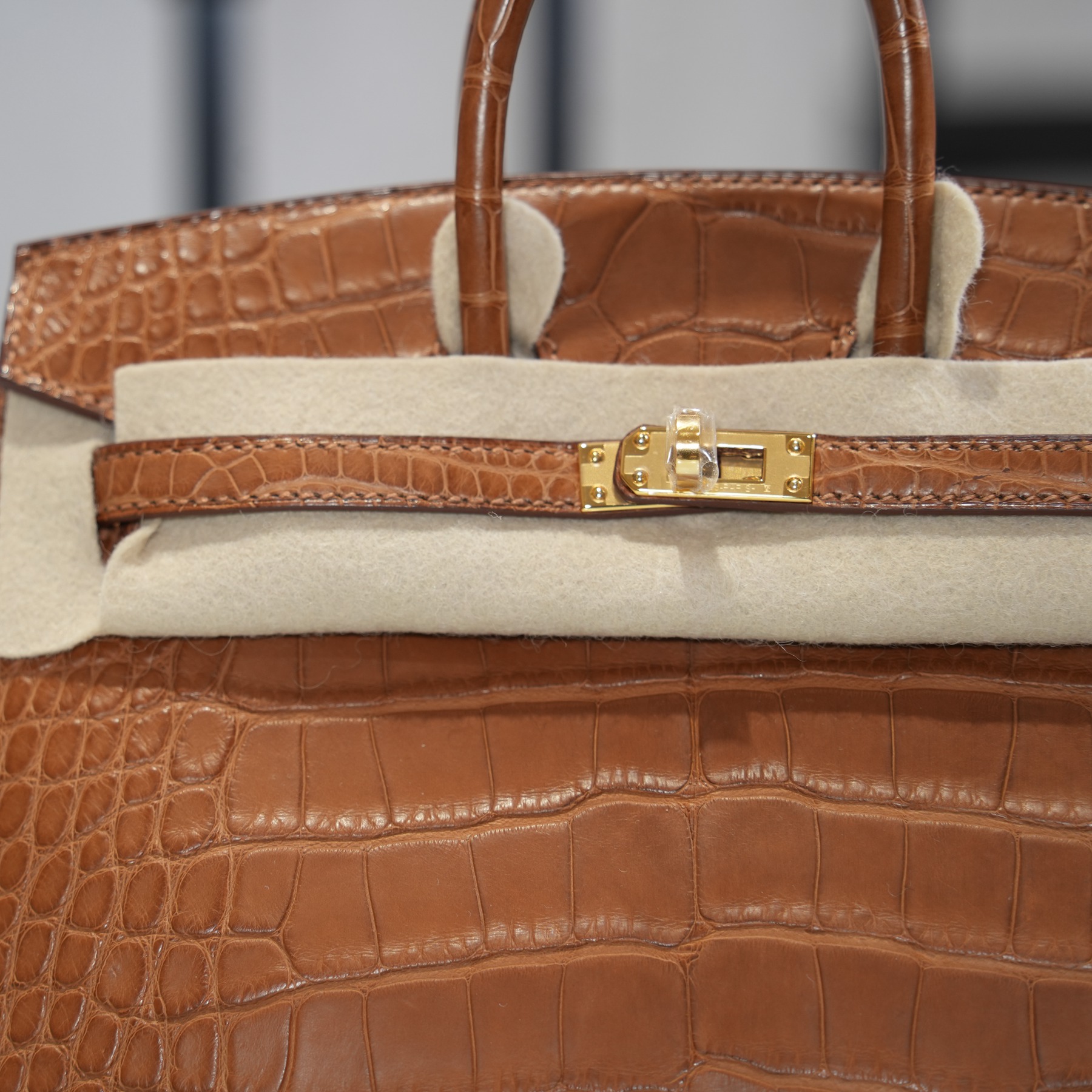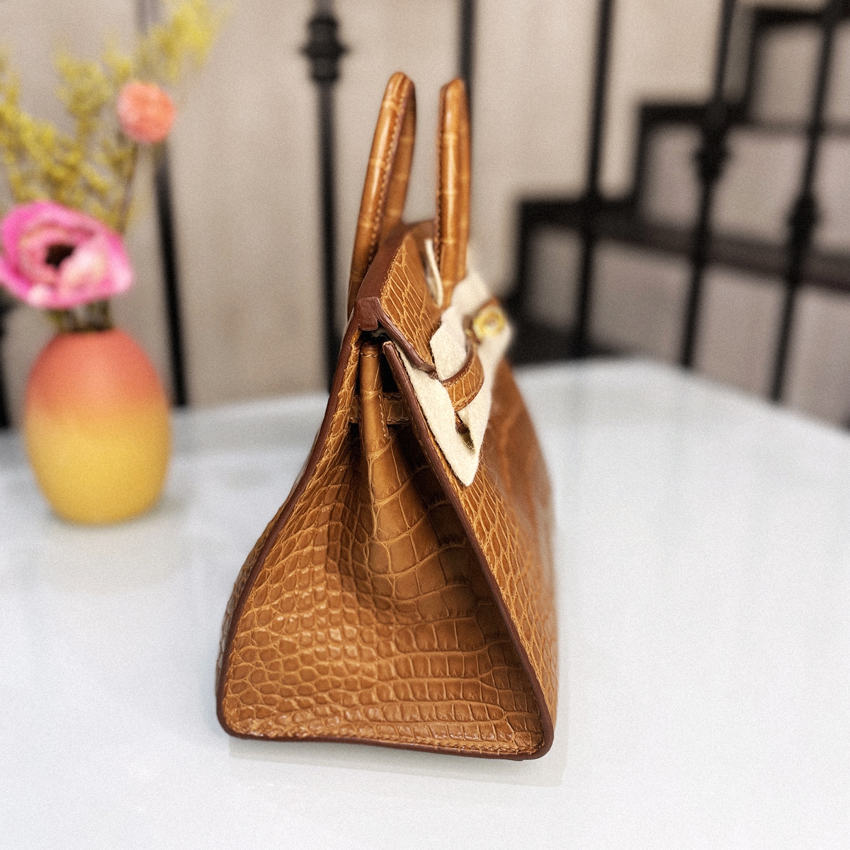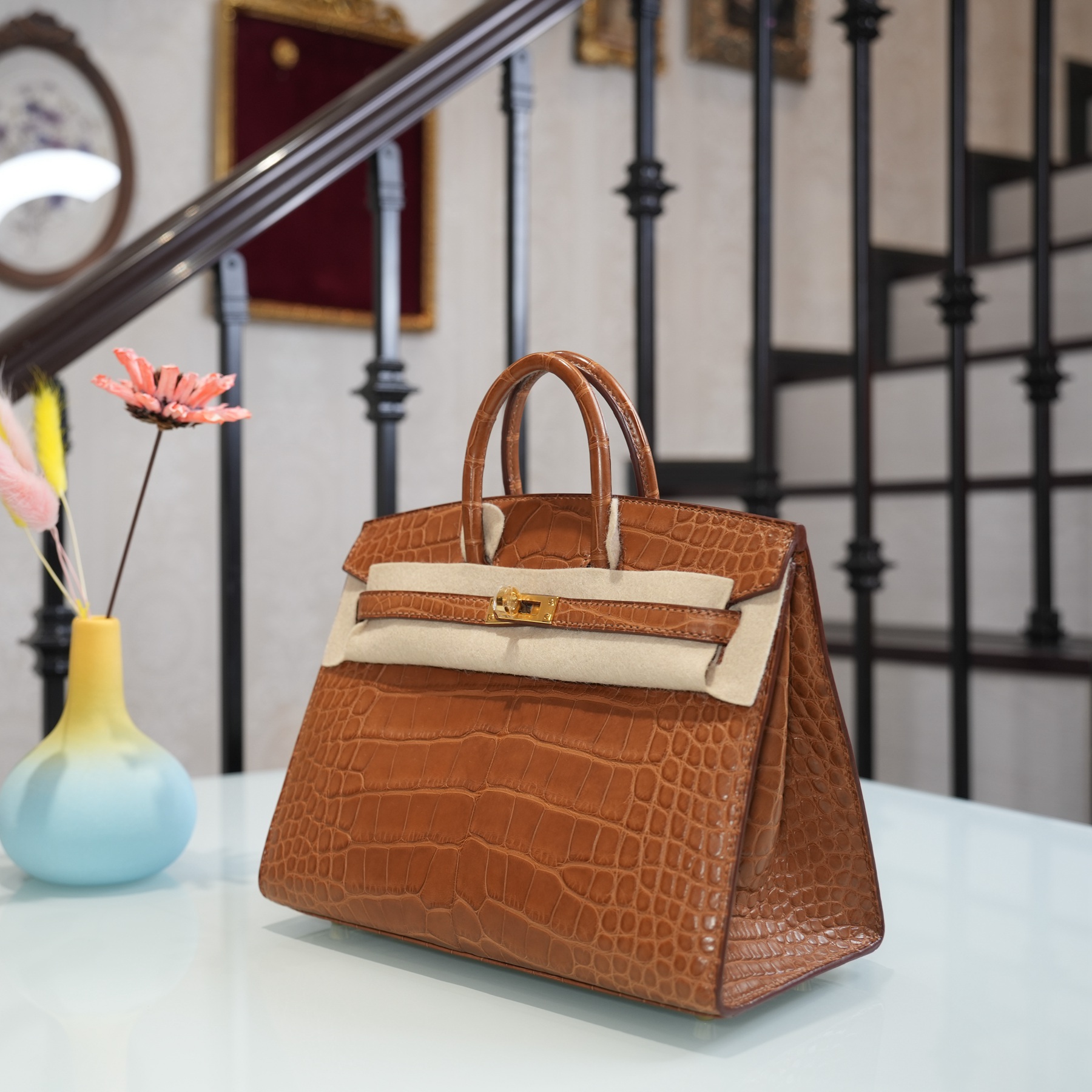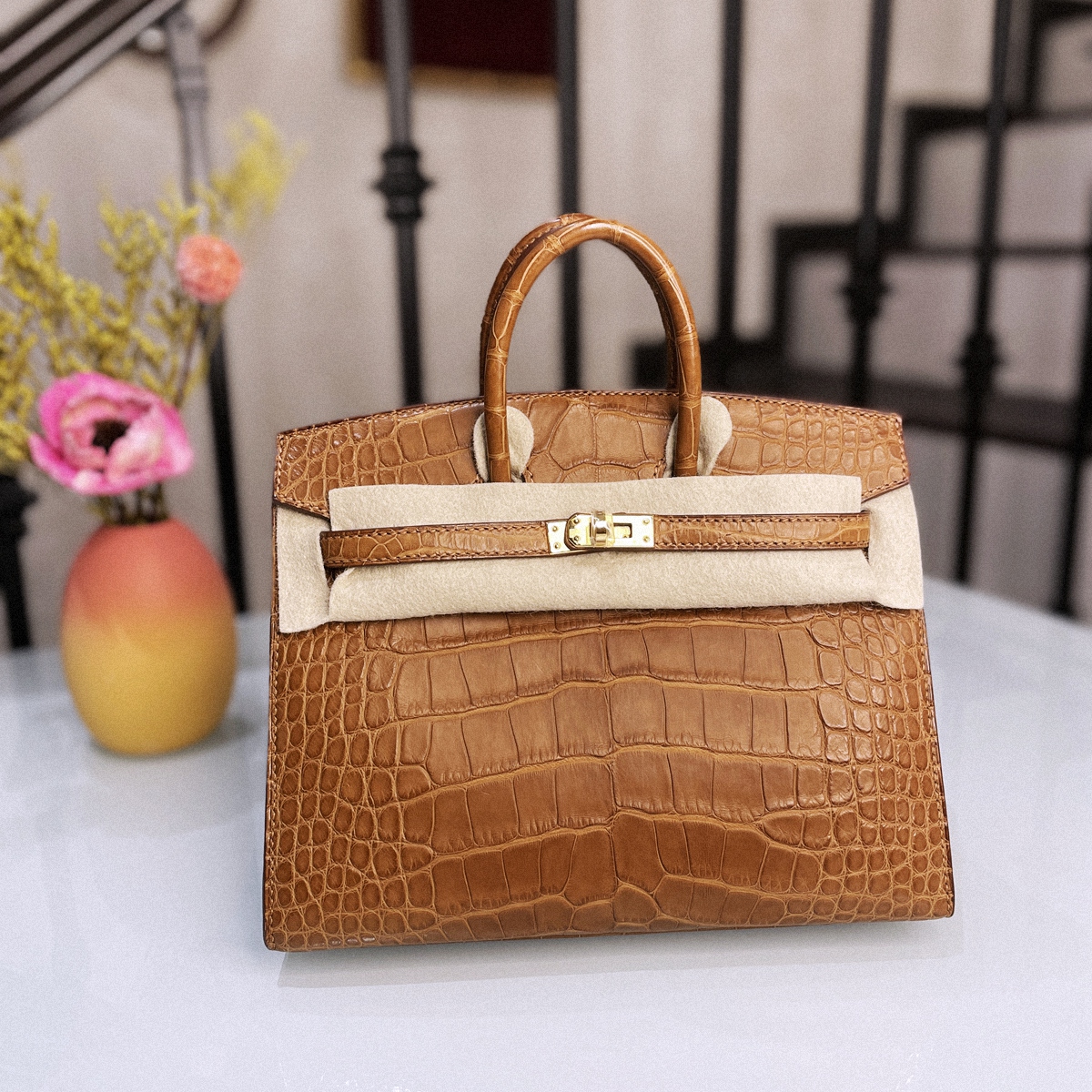 Birkin 20 Gold Brown gold buckle Alligator block fog surface