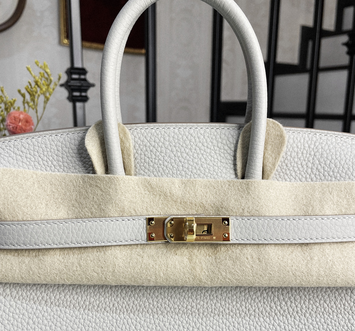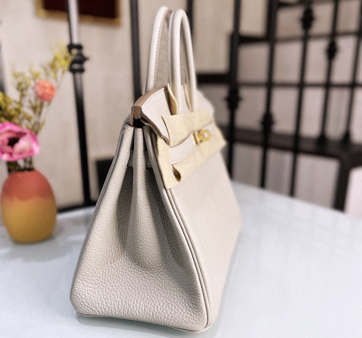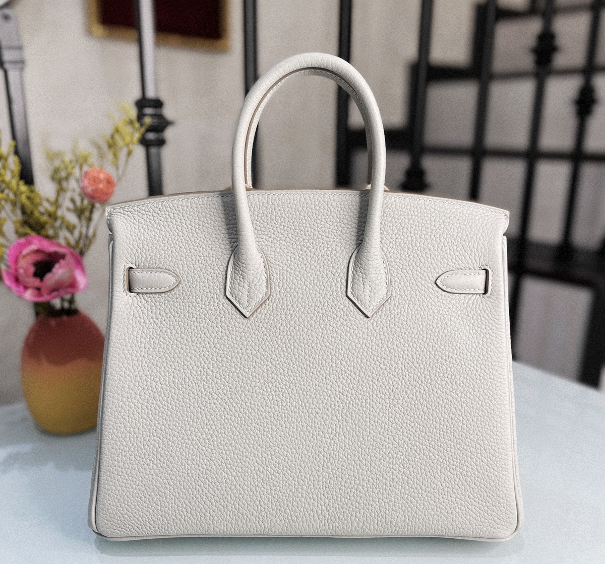 Birkin 25 CC80 Togo leather pearl gray gold buckle